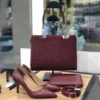 | Burgundy / Wine | A rich, deep red with purple undertones. The set features matte leather heels in a matching wine shade. | |