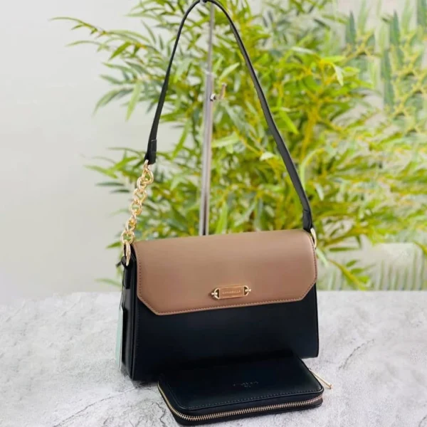 - Black & Taupe (A sleek black body with a sophisticated taupe/latte-colored flap).