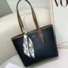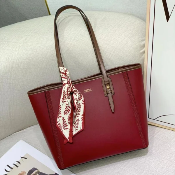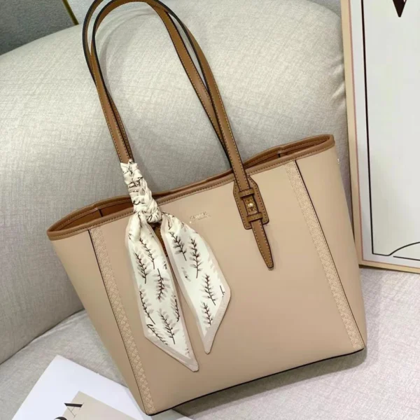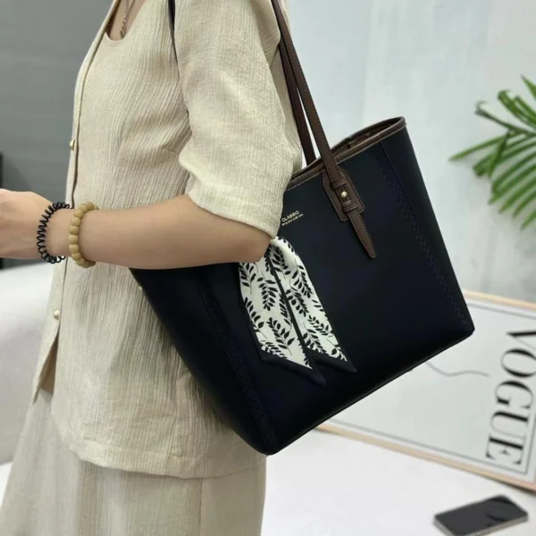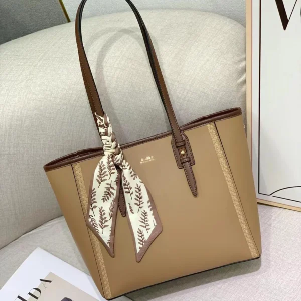 Material: Smooth faux leather (PU) with contrasting brown trim/straps.