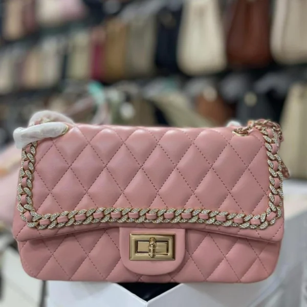 • Bag Name: Quilted Rhinestone Chain Flap Bag (often inspired by classic luxury “2.55” or “Classic Flap” silhouettes).